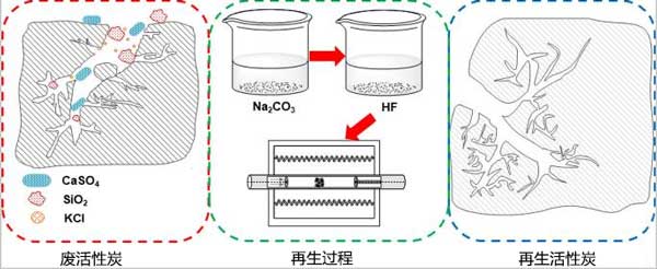 活性炭在燒結(jié)煙氣處理后的再生,采用了Na2CO3溶液、HF溶液和CO2的新型連續(xù)處理方法可以有效地從燒結(jié)煙氣凈化過程中再生廢活性炭。無機(jī)化合物如CaSO4和SiO2以及KCl的沉積導(dǎo)致活性炭失活,Na2CO3溶液可以將CaSO4轉(zhuǎn)化為CaCO3并去除水溶性化合物,如KCl。硫轉(zhuǎn)化率首先顯著增加,然后隨著Na2CO3濃度的增加變化減慢。當(dāng)Na2CO3濃度為0.5mol/L時(shí),硫轉(zhuǎn)化率自由基高達(dá)94.6%。另外在各種溶劑濃度和溫度都達(dá)到較好的水平,總體再生效率可達(dá)111%