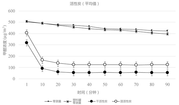 圖2:測(cè)試活性炭樣品時(shí)測(cè)得的甲醛濃度。