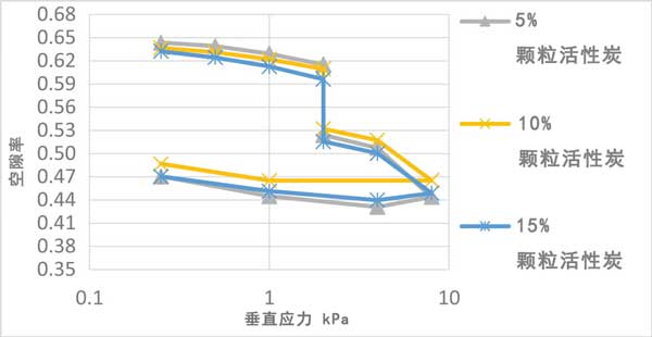 顆;钚蕴渴且环N比粉狀活性炭粒徑更大的碳,通常用于過(guò)濾水和空氣中的污染物等。由于其成本低、吸附效果好,被用于各種流行的處理領(lǐng)域。活性炭以5%、10%和15%的百分比添加到土壤中,結(jié)果表明增強(qiáng)效果如圖2所示。添加5%活性炭改善的石膏土單次塌陷試驗(yàn)結(jié)果表明,塌陷率已降低至5.55%,而添加10%活性炭處理的樣品在200kPa壓力下的孔隙比從0.610降低到0.610至0.532,導(dǎo)致崩盤可能性降低至4.7%。土樣經(jīng)15%活性炭處理后孔隙比由0.596變?yōu)?.516,坍塌潛力降至4.9%。由于具有微孔的活性炭的物理機(jī)制為良好的吸附提供了理想的環(huán)境,由于吸附材料可以同時(shí)與多個(gè)表面相互作用,活性炭吸附了一些石膏鹽,降低了塌陷潛力。
