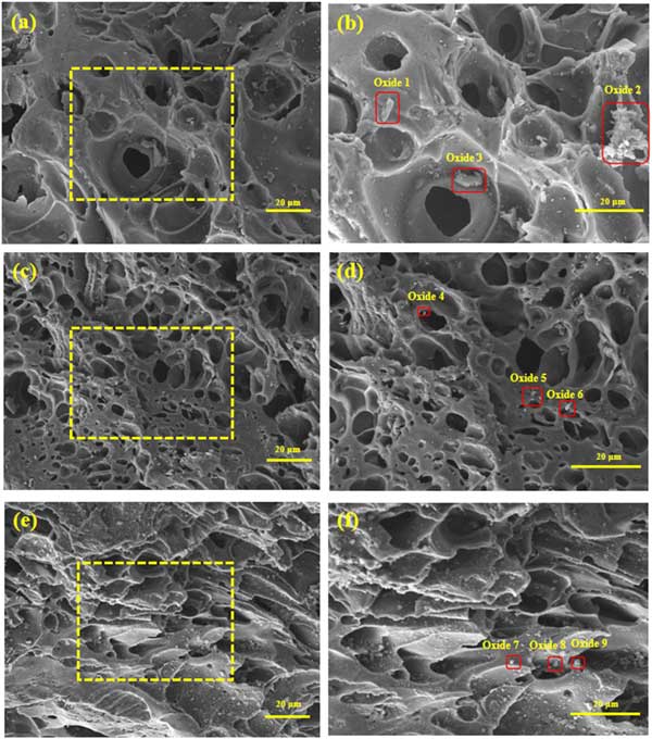 圖1顯示了活性炭載錳催化劑的表面微觀結(jié)構(gòu)。在圖1a和b中,活性炭載錳5催化劑表面孔隙分布不均勻,周圍有少量顆粒。當(dāng)Mn負(fù)載量為5%時(shí),可以在催化劑指示的塊狀附著物中檢測到少量Mn。這表明催化劑成功負(fù)載Mn,但是,它的含量很低。圖1(c)和(d)中,活性炭載錳7催化劑表面光滑,孔結(jié)構(gòu)發(fā)達(dá),孔道明顯增加,表面顆粒分布均勻。這有助于催化劑吸附氣體;钚蕴枯d錳7催化劑成功負(fù)載了中等含量的Mn元素,可以很好地改性活性炭。這些發(fā)現(xiàn)與圖3中脫硝曲線的結(jié)果一致。在圖1e和f中,活性炭載錳9催化劑表面粗糙,大小不一的孔隙分布不均勻,顆粒在表面局部堆積。這些因素堵塞了氣孔,抑制了脫硝。當(dāng)Mn負(fù)載量為9%時(shí),在催化劑表面檢測到大量附著物。高M(jìn)n含量表明Mn的過量負(fù)載可能導(dǎo)致催化劑表面21上的孔隙積累和堵塞(圖1e和f)。這可能是NO轉(zhuǎn)化率因負(fù)載過大而降低的原因之一。