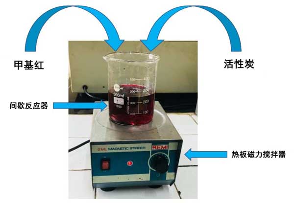 實驗的目的是研究使用橘皮活性炭作為吸附劑對甲基紅的吸附。通過監(jiān)測各種基本參數(shù),如吸附劑劑量(0.25–1.25g/L)、甲基紅濃度(100–400mg/L)、溫度(40–60℃)、接觸時間,進行分批吸附研究(10–60分鐘)和pH(3–11)。間歇式反應器是進行所有吸附研究的地方。吸附前后,廢水上清液中的甲基紅染料濃度用紫外-可見分光光度計測量。之后,在標準校準曲線的幫助下計算流出物中的濃度。每個實驗在受控設置下進行多次,取平均值用于后續(xù)計算。圖1表示批量吸附研究的實驗裝置。