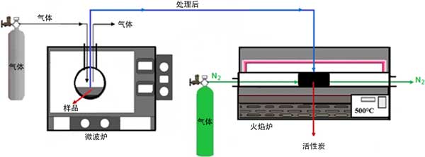 圖1:微波處理活性炭制造實(shí)驗(yàn)裝置示意圖。