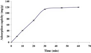 活性炭對(duì)廢水中有機(jī)物的吸附不僅受活性炭劑量的影響,還受到吸附劑在反應(yīng)混合物中的保留時(shí)間的影響。為了確定活性炭吸附過程的最佳保留時(shí)間,在最佳吸附劑(0.75 g / L)和幾個(gè)處理過的廢水樣品上進(jìn)行了實(shí)驗(yàn)。分析殘余的COD。所獲得的數(shù)據(jù)顯示在圖3中顯示了吸附能力(q)隨時(shí)間的變化。吸附能力隨著時(shí)間的推移而增加,并且COD水平隨著時(shí)間而降低。30 min 后COD的去除率為77%,q達(dá)到113 mg COD / g。因此,最佳保留時(shí)間選擇為30 分鐘。