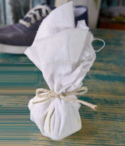 這一步是可選的,但如果你想要的話,你可以添加幾滴精油到過濾器的外部,讓你的鞋子附魔上你喜歡的氣味。并且你會發(fā)現(xiàn)活性炭會吸收一些精油氣味,但不是全部。咖啡過濾紙傾向于從制作的咖啡渣中吸收油,同時讓水通過,這對我們來說是比較適合的。讓精油放在過濾器的外部,而臭味和鞋子的水分通過過濾器吸收到活性炭粉中。