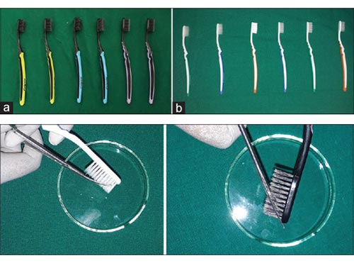 圖1:(a)活性炭牙刷。(b)非炭牙刷。切下刷毛并在分開的無(wú)菌培養(yǎng)皿上收集。