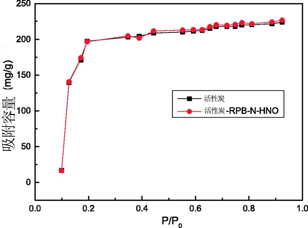 活性炭在高重力環(huán)境中的熱化合物改性。將100g活性炭作為填料層,并且以900r/min的速度操作300分鐘,其中99%氮?dú)鈴娜肟诙丝谕ㄟ^。得到的活性炭表示為活性炭-RPB-N。原始活性炭和活性炭-RPB-N用1mol·L-1HNO 3在70攝氏度,流速40L·min-1,轉(zhuǎn)速36.3Hz下進(jìn)行改性。在該處理之后,在用去離子水沖洗后,將兩個(gè)樣品在真空烘箱中在110攝氏度下干燥24小時(shí),并分別表示為活性炭-RPB-HNO和活性炭-RPB-N-HNO。