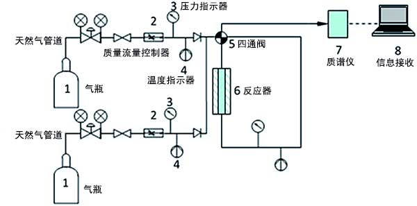 在我們之前的工作中開發(fā)了吸附裝置來測量氣體穿透曲線(圖1)。它由三個(gè)主要部分組成:準(zhǔn)備部分、吸附段和分析部分。在氣體制備部分中,吹掃氣體是高純度Ar氣體(99.999%),其用于在引入烴氣體之前通過惰性氣體管線和反應(yīng)器吹掃系統(tǒng)。吸附部分使用丙烷或乙烷在氦氣或人造氣體混合物,其通過燃料氣體管線和反應(yīng)器。這兩條線都碰到了一個(gè)四端口交叉閥。整個(gè)裝置等溫(~26℃)。閥門位置,氣體流量,壓力和溫度完全自動(dòng)化,并由內(nèi)部程序控制。通過質(zhì)譜儀分析和量化來自反應(yīng)器出口的氣體。