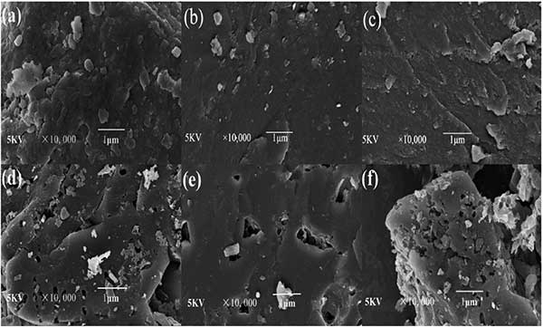 從表面形態(tài)分析不同煤和活性炭的SEM圖像如圖2所示。它表明三種活性炭的表面相對(duì)光滑,沒(méi)有任何毛孔,除了偶爾的裂縫。在活化后,三個(gè)活性炭的外表面都顯示出不規(guī)則的孔。活性炭的表面相對(duì)粗糙并且表現(xiàn)出更多的孔。而具有低灰分和揮發(fā)性物質(zhì)含量的炭2顯示出相當(dāng)光滑的表面?赡苁窃跉饣^(guò)程中形成的金屬鉀可以擴(kuò)散到碳基質(zhì)的內(nèi)部結(jié)構(gòu)中,從而擴(kuò)大現(xiàn)有的孔隙并產(chǎn)生新的孔隙。
