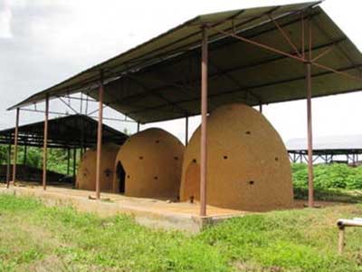 在這個(gè)過(guò)程中,活性炭前植物材料被切成均勻尺寸堆在窯中水平堆放(圖1)。然后用磚塊封閉門(mén),并在外面抹上泥漿,以便更好地隔熱并防止泄漏。通過(guò)在水平和垂直方向上調(diào)節(jié)開(kāi)口將溫度保持在400-500℃來(lái)實(shí)現(xiàn)碳化。所有開(kāi)口在2天后關(guān)閉,以便不允許空氣進(jìn)入窯以防止活性炭原炭化料著火。冷卻一天以將溫度降低至100℃。將炭化料從窯底部的開(kāi)口中取出并洗滌,干燥并粉碎,并進(jìn)一步進(jìn)行化學(xué)活化,兩種活性炭分別用硝酸和磷酸活化獲得四種不同屬性的活性炭。并用蒸餾水洗滌活性炭以除去過(guò)量的酸,并在150℃下干燥12小時(shí),獲得的粉末狀活性炭具有40-50μm篩目的粒度。