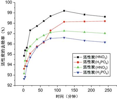 圖3:接觸時(shí)間對(duì)微量元素去除率的影響。