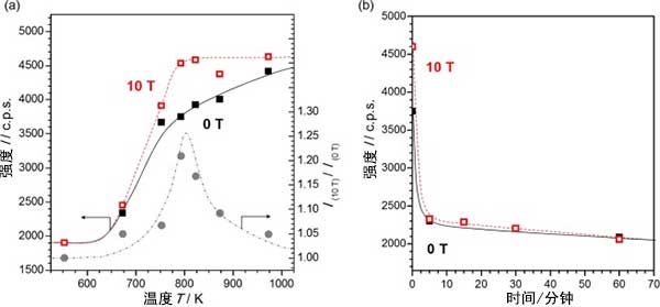 我們對(duì)煤焦油瀝青的碳化處理,在各溫度下和不存在和存在磁場(chǎng)的情況下制備的活性炭的XRD峰強(qiáng)度繪制在圖1(a)中。能觀察到大磁場(chǎng)效應(yīng),對(duì)于用穩(wěn)定化制備的普通活性炭前體,不可能獲得磁場(chǎng)效應(yīng)。該結(jié)果通過在氧化氣體中熱處理期間在碳材料中形成的氧交聯(lián)結(jié)構(gòu)來解釋,通過穩(wěn)定化形成氧交聯(lián)結(jié)構(gòu)不僅導(dǎo)致碳化的抑制,而且使得液晶樣行為變得不可能。這被認(rèn)為是沒有出現(xiàn)磁場(chǎng)效應(yīng)的原因。為了闡明交聯(lián)結(jié)構(gòu)形成所需的時(shí)間,在碳化之前進(jìn)行穩(wěn)定化,時(shí)間從0到120分鐘變化。此處,0分鐘以外的制備方法基于制備活性炭前體的一般方法。XRD峰強(qiáng)度相對(duì)于穩(wěn)定如圖1(b)所示。無論是否存在磁場(chǎng),在碳化之前穩(wěn)定5分鐘后衍射急劇減少。在氧化條件下,無論是否存在磁場(chǎng),都進(jìn)行交聯(lián)。