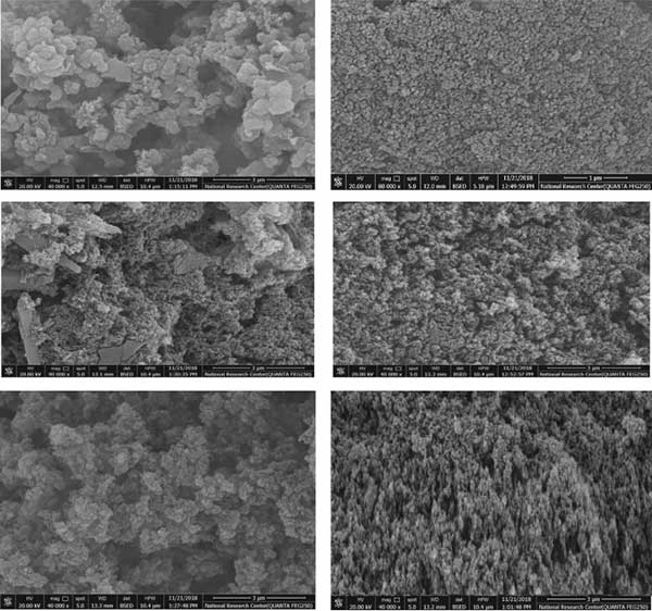 對于SEM研究的情況,活性炭的形態(tài)顯示出不均勻和粗糙的表面(圖2)。在放大倍數為40000時,可以看出表面被硅磷酸鹽晶體覆蓋。來自稻草的蘇打制漿黑液的活性炭具有較高的硅磷酸鹽晶體。然而,使用中性亞硫酸鹽制漿黑液的活性炭中只有較低的晶體。