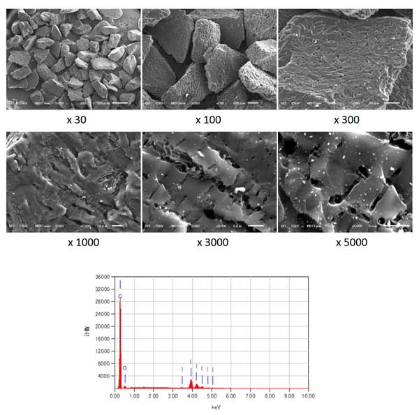 圖1顯示了碘浸漬活性炭的SEM圖像。生產過程不影響活性炭的表面,并且在浸漬過程之前比較碘浸漬活性炭和活性炭沒有觀察到表面差異。EDS結果顯示顆粒上存在碘,證實了浸漬的成功。