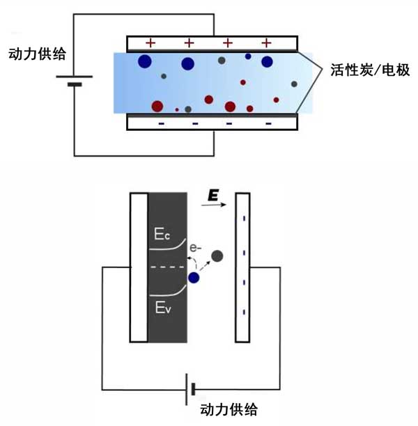 電吸附效應(yīng)包括向半導(dǎo)體氣體傳感器的敏感層施加外部電場,以改變其感應(yīng)行為。當(dāng)負(fù)電分子接近薄金屬導(dǎo)體的表面時(shí),自由電子從固體表面被吸引。重要的是,如果處理具有較少可用位移電荷的半導(dǎo)體(例如活性炭),則靜電吸引所涉及的層的厚度將較大,而電導(dǎo)率將較低。半導(dǎo)體電性能的這種變化是金屬氧化物(MOS)氣體傳感器的基本操作。如果將所述系統(tǒng)放置在電場之間,例如通過在兩個(gè)電極之間施加電壓來感應(yīng),該電場可能會(huì)迫使電子朝向(或遠(yuǎn)離)(半)導(dǎo)體表面,從而降低(或增加)吸附某些氣態(tài)物種(圖1)。