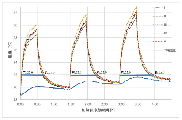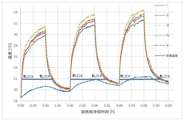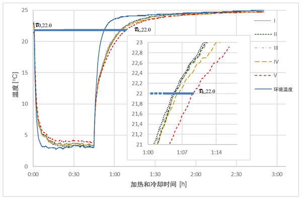 在分析曲線如圖2,圖3和圖4中,并收集結(jié)果,在一個(gè)溫度(22℃)中選擇,清楚地表明不同相變材料的影響活性炭中的量上的周期時(shí)間長度與發(fā)生個(gè)體樣品中的熱交換過程。相對于溫度傳感器的更高的質(zhì)量和熱容量,即使吸附的相變材料的量很小,也可以看到處理時(shí)間的差異。當(dāng)與參比樣品(I),沒有相變材料,總的冷卻和加熱時(shí)間的所有樣品與相變材料的不同水平長。對于樣品V,此時(shí)間延長了7.5%,對于樣品IV,延長了5.2%,對于III,延長了2.4%,對于樣品II(未活化的活性炭),僅延長了0.2%。