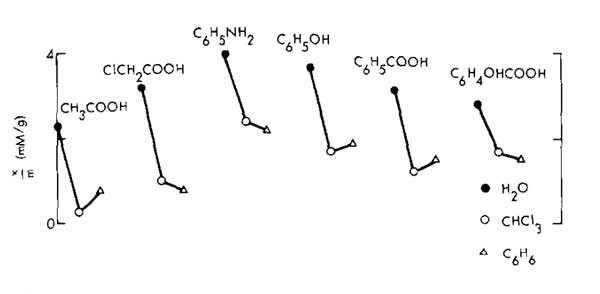 等溫線的比較表明,吸附通常以CICH,COOH>CHsCOOH>OHCH,COOH>NH,CHsCOOH的順序降低。圖1通過取代乙酸在碳原子上的吸附等溫線顯示了這一點。