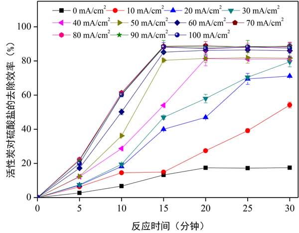 圖2:電流密度對(duì)硫酸鹽去除效率的影響。