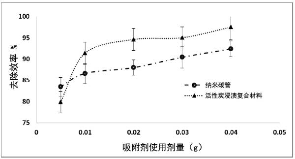活性炭浸漬聚丙烯腈和苯乙烯材料是完全去除水中活性紅染料的好用吸附劑。采用簡單的沉淀聚合法制備了聚(丙烯腈-苯乙烯)浸漬活性炭生產(chǎn)的復合材料,在該技術應用中,制備的材料成本低,在室溫下與少量吸附劑的接觸時間較短時發(fā)生快速吸附現(xiàn)象,并且其以高效率再生更多循環(huán),這使得接觸裝置的尺寸更小,這反過來又直接影響到該技術的運行成本和生產(chǎn)能力。但是多壁碳納米管加活性炭材料的結合使用,可以在較短的吸附時間內(nèi)很快地去除水溶液中的染料。