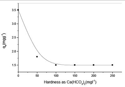 選擇的共存離子是通常在地下水中發(fā)現(xiàn)的碳酸氫鈣,并造成暫時的硬度。在圖2中證明了這一點。在Ca(HCO 3)2存在下,硝酸鹽的去除率明顯降低。這些物質(zhì)的抑制作用可歸因于NO 3 -和HCO 3 -離子的相同結(jié)構(gòu)。它們都是平面的,并且N-O和C-O鍵之間的角度是相同的并且等于120℃?梢院侠淼赜纱苏J(rèn)為,HCO 3個 ˉ陰離子競爭性吸附到相同的活性位點的RS的表面上。