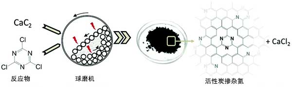 圖1:室溫下合成活性炭的機械化學(xué)反應(yīng)的概念。