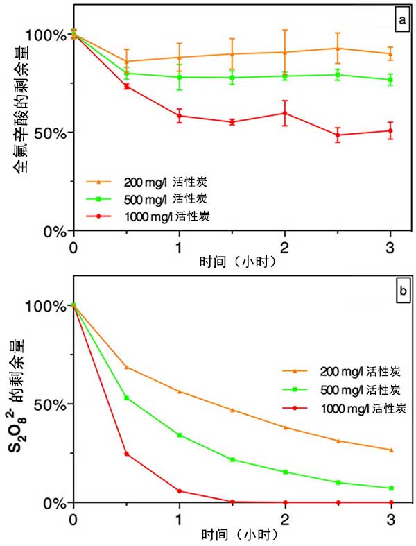 在存在和不存在活性炭的情況下通過(guò)過(guò)硫酸鹽處理全氟辛酸