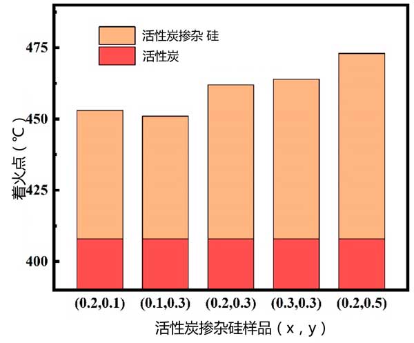 圖3:原料和不同活性炭的著火點(diǎn)。